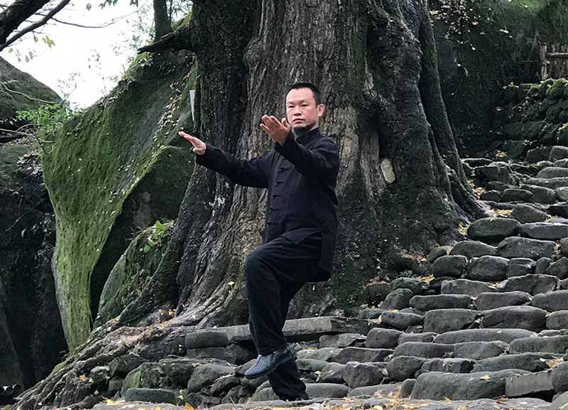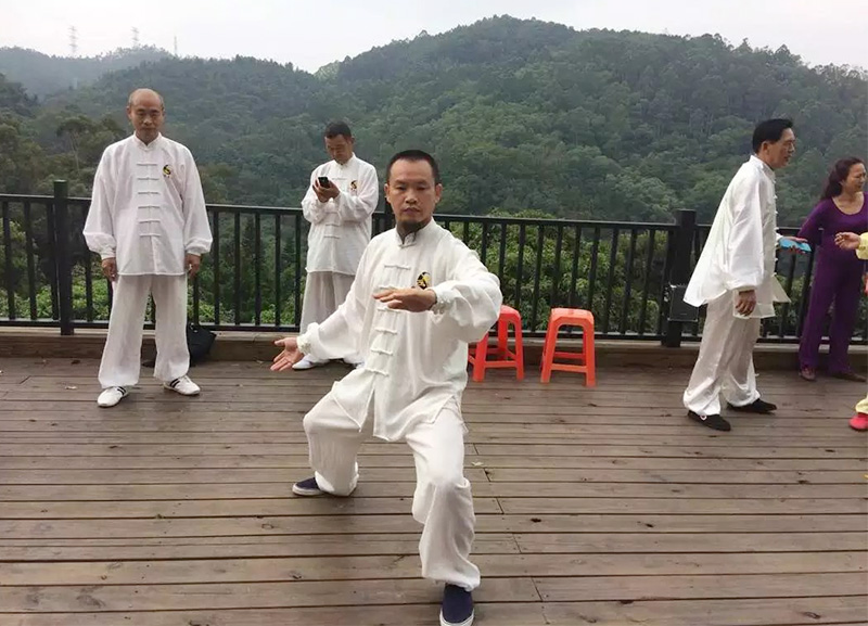 这种情况就是以一脚之沉保证另一脚之轻灵,也就是太极拳的轻灵是必须以沉着为基础的。因为如果一脚的移动没有另一脚的沉着是无法轻灵的。而太极拳的沉着又是有赖于轻灵的。因为太极拳的沉着不仅仅是依靠体重与技巧,主要还是要使得别人难以将攻击力作用到自己的身体重心,这就需要依靠另一脚的轻灵。所以,太极拳的沉着与轻灵是相互依存、相反相成的。如果认为既有根又无根是不可能的,太极拳自然是不可能真正学会的。有的人以为太极拳是无根而不能有根,以为手臂完全被躯干带动、全身动作就如同是水浪的动态就是太极拳,其实是将太极拳的灵魂“随人而动”完全摒弃了,这样的拳是根本不能认为是太极拳的。
